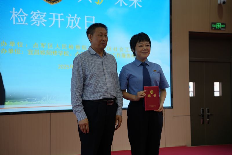 隨后,徐校長為點軍區(qū)檢察院陳露檢察官頒發(fā)法治副校長聘書。這一重要舉措標(biāo)志著學(xué)校與司法機關(guān)的合作邁上新臺階,將進一步推動法治教育常態(tài)化、專業(yè)化發(fā)展,為構(gòu)建平安校園、護航學(xué)生健康成長提供更有力的法治保障。