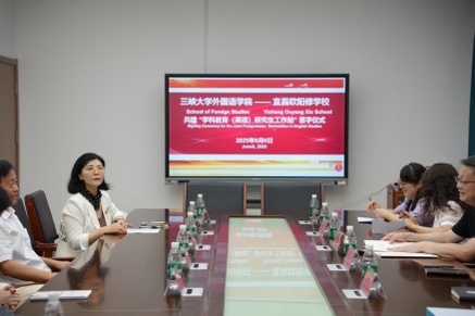 三峽大學(xué)外國(guó)語學(xué)院英語系主任劉君紅:“學(xué)科教學(xué)(英語)產(chǎn)教融合研究生工作站”的建設(shè)意義深遠(yuǎn),研究生帶來的新視角、新方法和研究課題,將如源頭活水般注入高中學(xué)校的生動(dòng)課堂,有助于共同探索高層次、應(yīng)用型英語人才培養(yǎng)的新模式,同時(shí)與時(shí)俱進(jìn),從英語專業(yè)角度去整合資源,探索國(guó)內(nèi)英語教學(xué)的發(fā)展局勢(shì)和教育的國(guó)際化帶來的各種機(jī)遇與挑戰(zhàn),包括AI對(duì)于英語教學(xué)的影響,教學(xué)改革的深度和廣度,都會(huì)讓英語老師從工作站學(xué)術(shù)發(fā)展中得到相應(yīng)的指導(dǎo)。宜昌歐陽修學(xué)校國(guó)際部主任李翠銀:英語學(xué)科研究生工作站是一座連接高等學(xué)府與基礎(chǔ)教育的堅(jiān)實(shí)橋梁,構(gòu)建了理論緊密聯(lián)系實(shí)踐、研究深度服務(wù)教學(xué)的寶貴平臺(tái)。宜昌歐陽修學(xué)校國(guó)際高中目前是宜昌市唯一獲得英國(guó)駐中國(guó)大使館文化教育處BritishCouncil(英國(guó)文化教育協(xié)會(huì))授牌的“星級(jí)雅思示范學(xué)?!?、“雅思教師培訓(xùn)基地”、“Aptis普思考試示范學(xué)校”。近幾年在英國(guó)文化教育協(xié)會(huì)的指導(dǎo)下,我們的英語教學(xué)正在不斷改革和優(yōu)化,也取得了優(yōu)異成績(jī)?,F(xiàn)在有三峽大學(xué)外國(guó)語學(xué)院的全方位支持,必將如虎添翼!研究生工作站一定會(huì)成為①培養(yǎng)具有扎實(shí)語言功底、跨文化溝通能力、創(chuàng)新思維和實(shí)踐能力的高素質(zhì)英語人才的孵化器;②推動(dòng)英語學(xué)科理論創(chuàng)新與實(shí)踐應(yīng)用緊密結(jié)合的催化劑;③提升雙方教育教學(xué)的影響力和競(jìng)爭(zhēng)力的助推器。