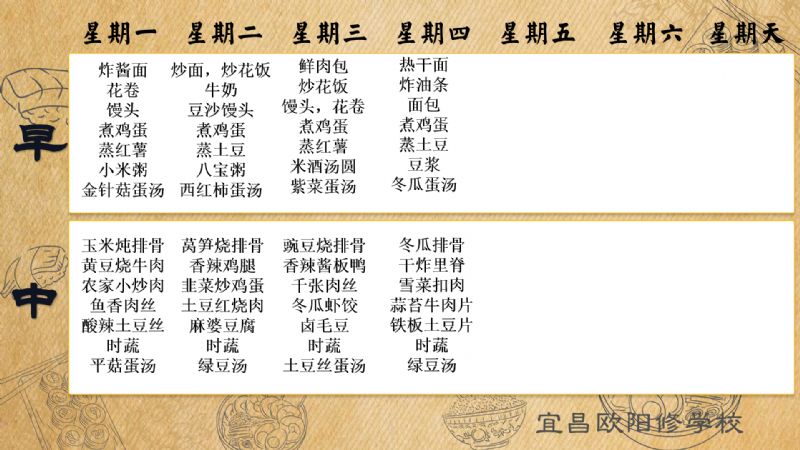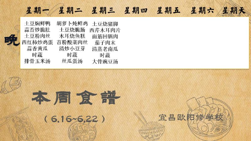 宜昌歐陽修學(xué)校每周食譜(6月16日至6月22日)