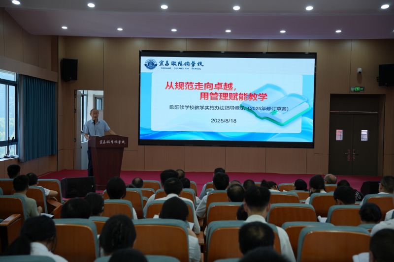 吳校長講解宜昌歐陽修學?!稓W陽修學校教學實施辦法指導意見(2025年修訂草案)》,圍繞“從規(guī)范走向卓越,用管理賦能教學”的核心目標,出臺系列教學管理新規(guī),涵蓋教學實施、過程考評及質(zhì)量獎勵三大方面,為提升教學質(zhì)量奠定堅實基礎(chǔ)。