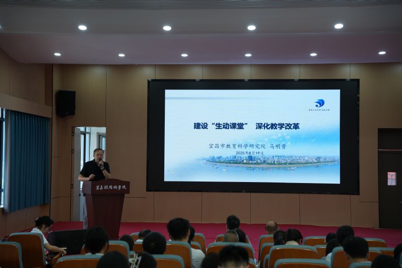 8月19日上午,馬院長以“建設生動課堂,深化教育改革”為題,從“生動課堂”建設的必要性、“生動課堂”的內(nèi)涵和特征、“生動課堂”的實施路徑三個方面作引領(lǐng)報告。他強調(diào),“強教必先強師,強師必先強課堂”,生動課堂建設是回應時代對高質(zhì)量教育迫切需求的必然選擇。馬院長系統(tǒng)闡釋了生動課堂的核心內(nèi)涵——即以素養(yǎng)目標為引領(lǐng),依托真實情境創(chuàng)設與學科實踐深化,激發(fā)學生深度思維和主動參與,最終呈現(xiàn)生機勃勃的課堂生態(tài),并進一步提出“四維聯(lián)動”實施路徑:以價值觸動為魂,深刻理解教學內(nèi)容蘊含的育人價值;以內(nèi)容聯(lián)動為基,注重知識的整合與綜合學習;以思維觸動為要,通過實踐活動激發(fā)學生深度思考;以學習主動為本,關(guān)注學生差異,落實因材施教,調(diào)動學習積極性。這些內(nèi)容為教師如何上好生動課堂指明了努力方向和具體路徑。馬院長用一個個鮮活的案例將我們帶入一個個真實的教育場景中,為老師們帶來了一場兼具深度與溫度的盛宴。