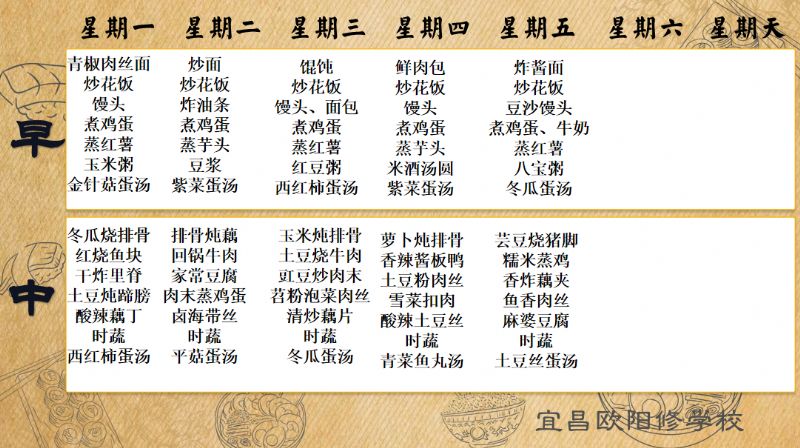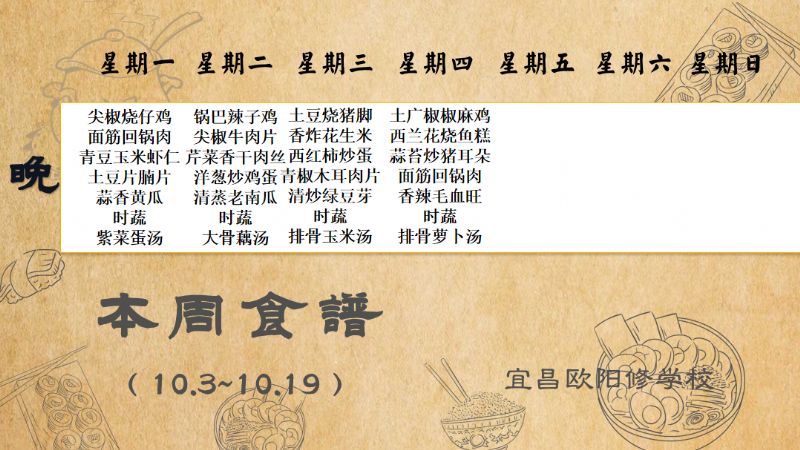 宜昌歐陽(yáng)修學(xué)校每周食譜(10月13日-10月19日)