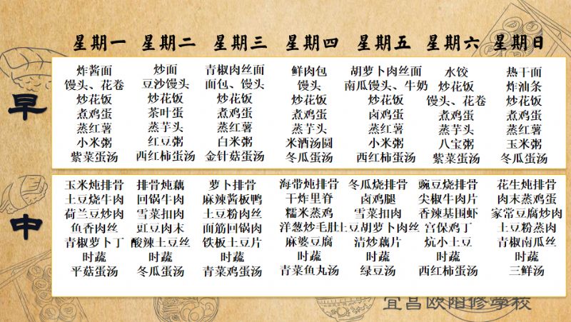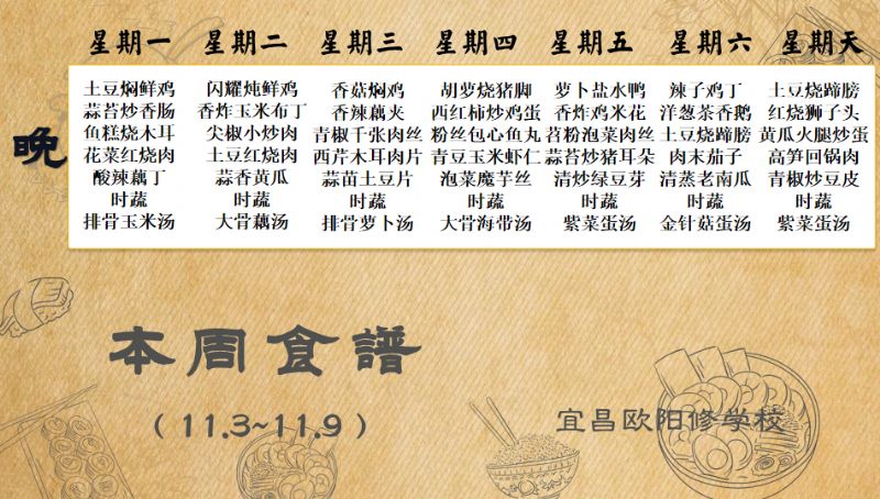 宜昌歐陽修學(xué)校每周食譜(11月3日-11月9日)
